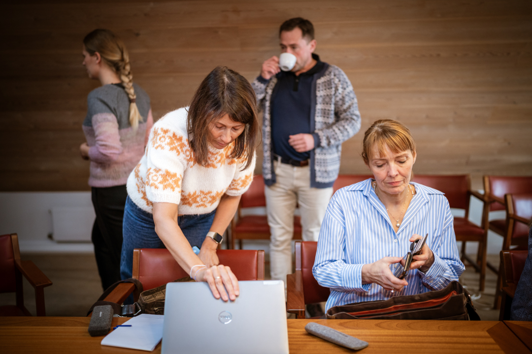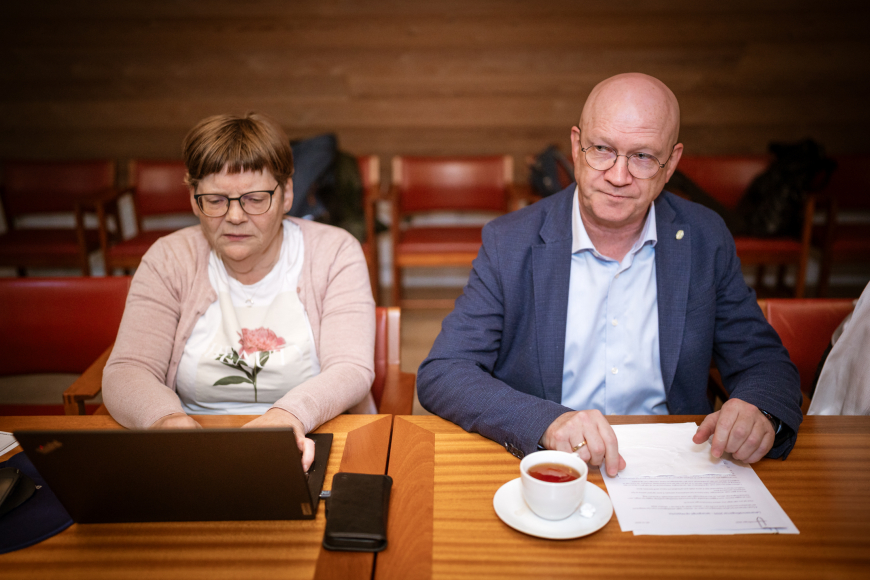 Súni Selfoss, formaður í Starvsfelagnum, og Anna Johannesen, felagsskrivi, á fundi í Tinganesi.